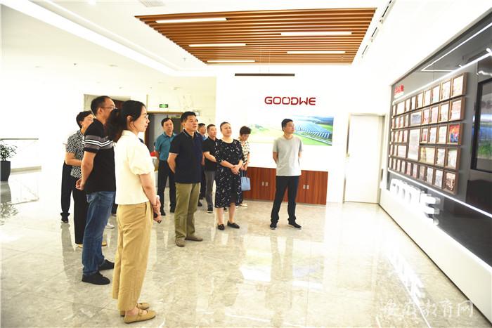 张光勇等首先到广德经济技术开发区固德威电源科技有限公司,听取企业负责人对产品生产研发销售情况的介绍,了解校企合作育人、学生就业及职业发展等情况。