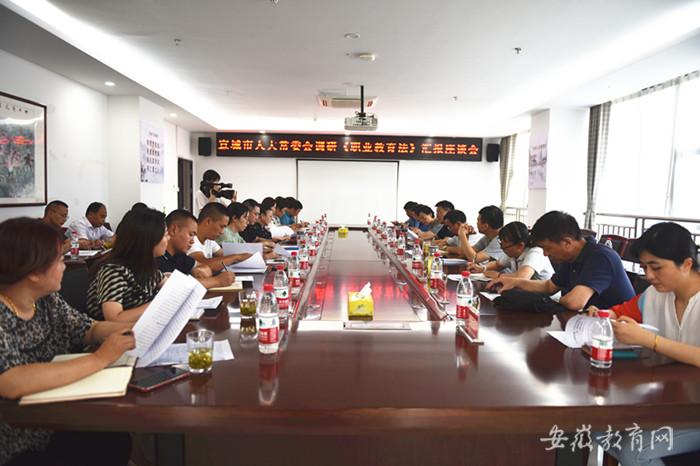 在随后召开的座谈会上,江晓华就广德市《职业教育法》学习宣传贯彻、职业教育办学、政府支持职业教育发展政策措施及职业教育办学存在的问题与困难等进行了汇报;宣城市机电学校、广德市商贸工程学校主要负责人就学校办学基本情况、人才培养、校企合作产教融合等情况进行汇报;广德固德威电源科技有限公司、广德永茂泰两所企业负责人就校企合作技能人才培养、学生职业发展规划指导及工匠精神的打造等情况做汇报;皖嫂家政、睿天职业培训学校两所民办职业技能培训机构负责人就举办各项职业技能培训等工作进行介绍;两名企业界人大代表就企业用人需求、校企合作、员工培训等情况提出建议,并主动表示为学生提供校外实训场地和设备。会议还听取了广德市人社局、教体局负责人就《职业教育法》的学习宣传及贯彻落实情况的汇报。