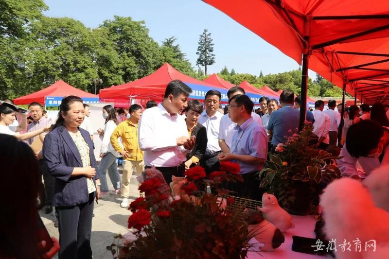 5月23日,阜阳市2023年职业院校办学成果展在清河广场举办。市委常委常务副市长胡明文;市人大常委会副主任、阜阳幼儿师范学校党委书记金杰、市政府副市长、市公安局局长张晓东、市政协副主席于伟巡视观摩。
