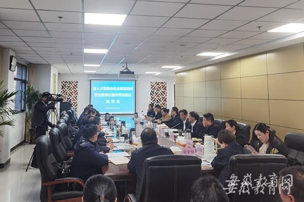 近日,省人大常委会副主任谢广祥率调研组赴安徽金寨职业学校就新修订的《中华人民共和国职业教育法》宣传贯彻落实情况开展调研。省人大常委会教科文卫委员会主任委员郭德成、副主任委员辛生,省教育厅副厅长解平参加调研。
