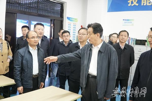 六安市人大常委会主任付新安,六安市人大常委会副主任司敏,金寨县委副书记、县长张涧,金寨县人大常委会主任程东中,安徽金寨职业学校党委书记包训成、副校长魏光辉陪同调研。(汪世杰 特约通讯员:黄源)